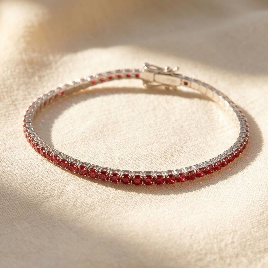 Garnet Gemstone Sterling Silver Tennis Bracelet