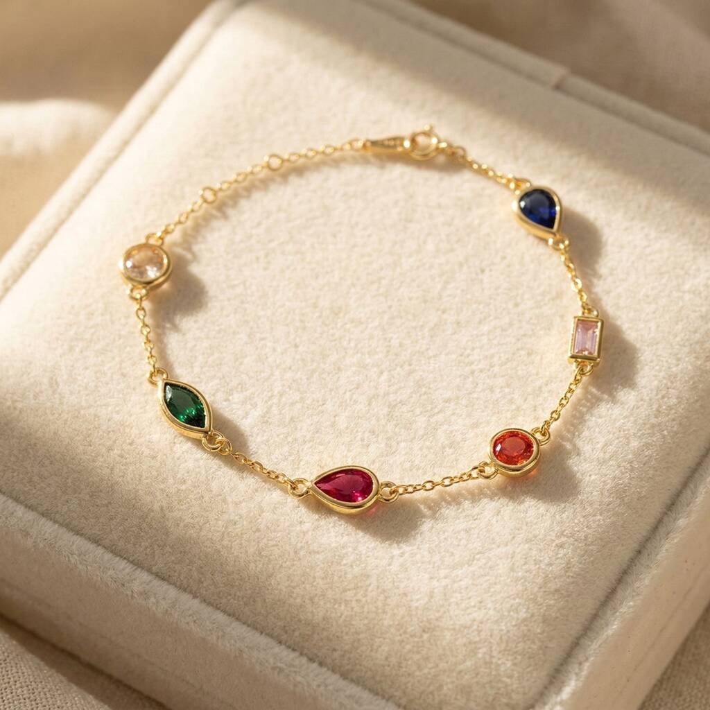 Geometric Multicolour Gemstone Gold Plated Bracelet