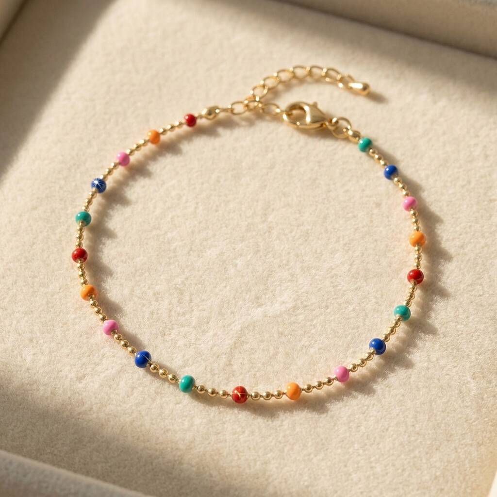 Gold Plated Carnival Multi Coloured Beaded Bracelet