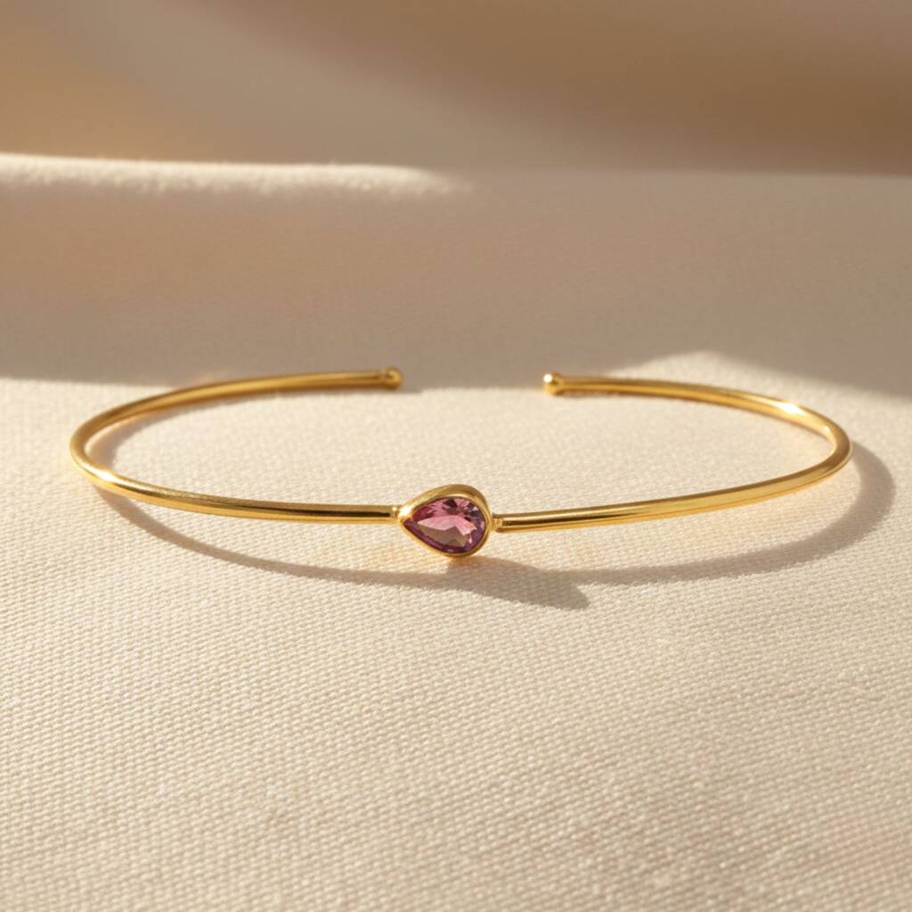 Gold Plated Minimalist Ruby July Birthstone Bangle