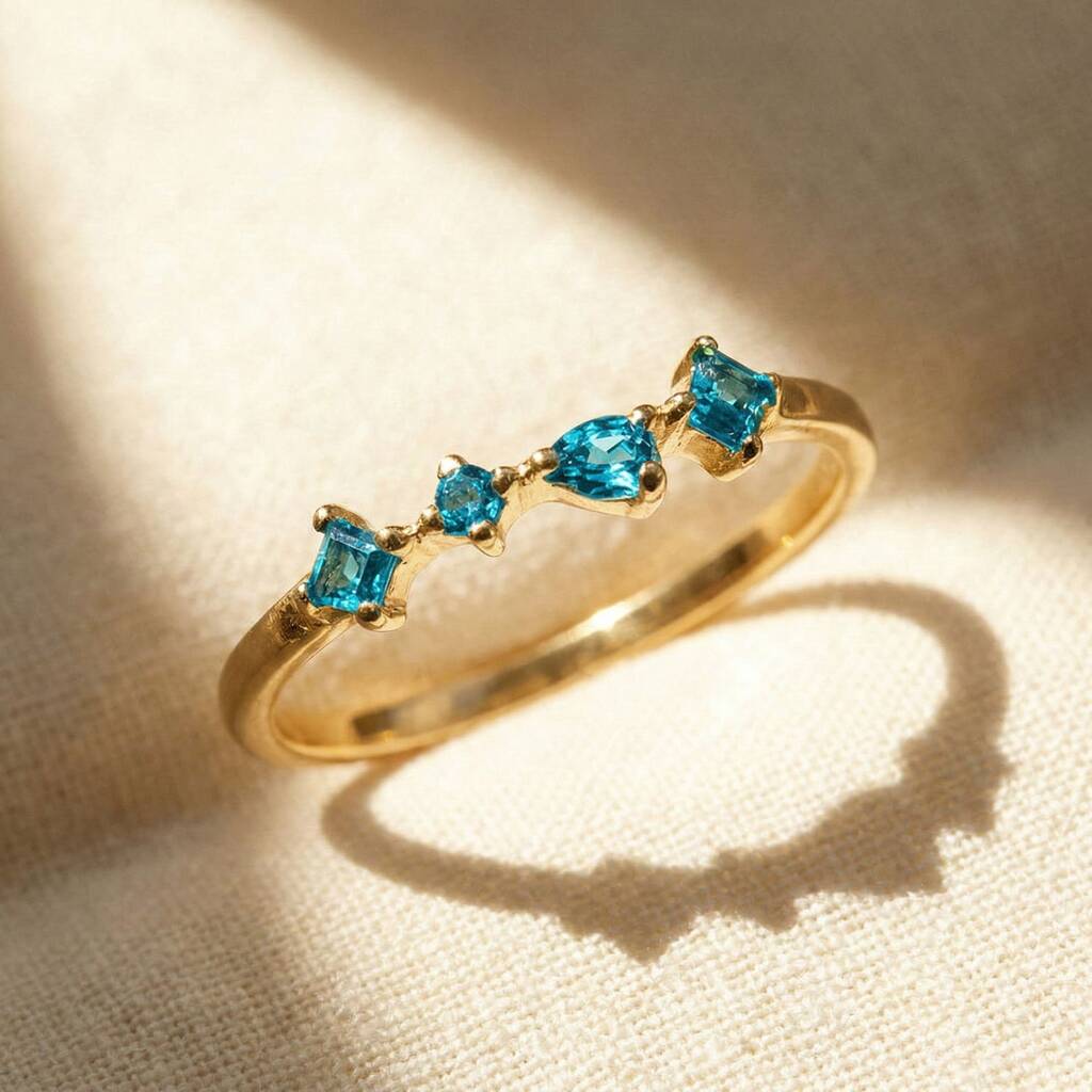 Our Adjustable Gold Vermeil Ring with Minimalist Blue Aquamarine Gemstones is a perfect blend of elegance and serenity.Featuring aquamarine, the soothing March birthstone, this ring symbolizes peace, courage, and clarity, making it an ideal gift for birthdays or anyone in need of tranquility. The adjustable design ensures a comfortable fit for everyday wear, while the minimalist aesthetic adds a modern touch to any outfit. Celebrate special moments or treat yourself to this exquisite piece that combines style with meaningful symbolism.