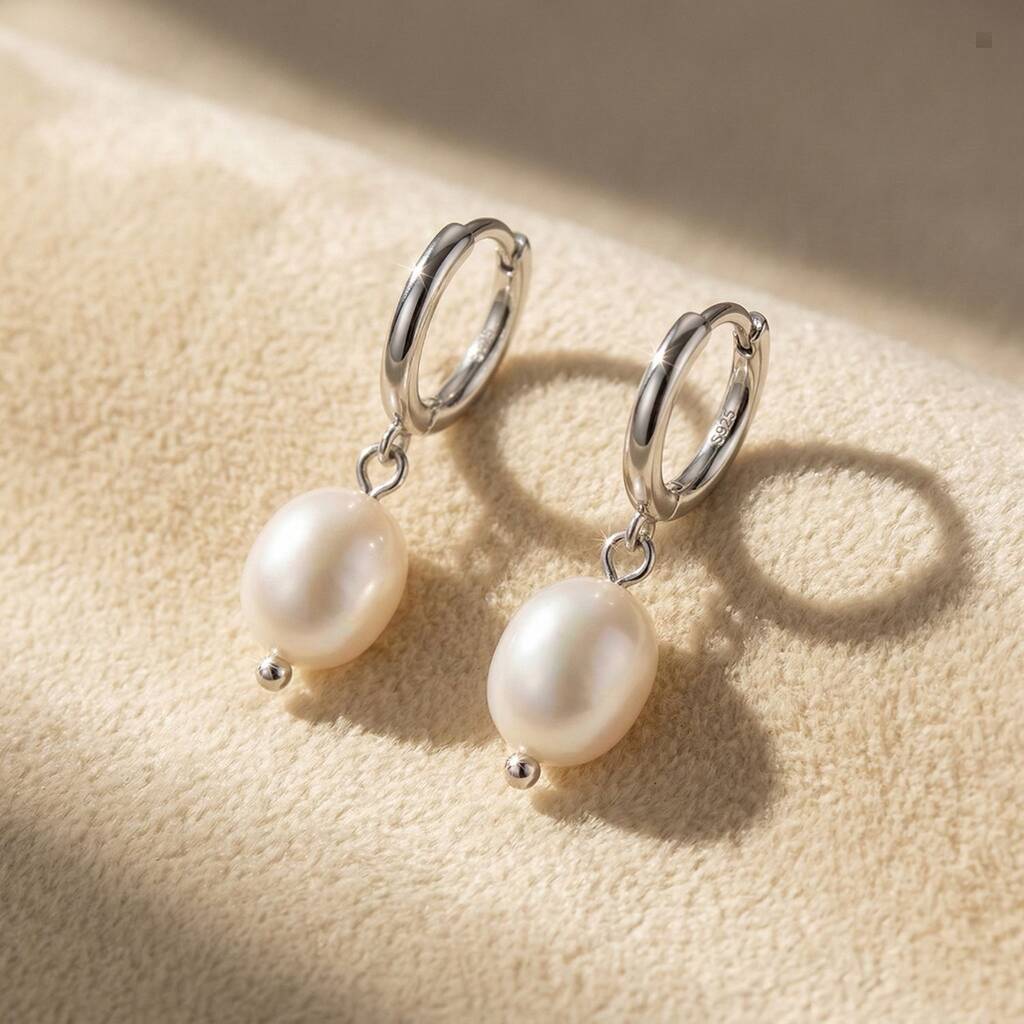 Minimalist Freshwater Pearl Silver Huggie Hoop Earrings