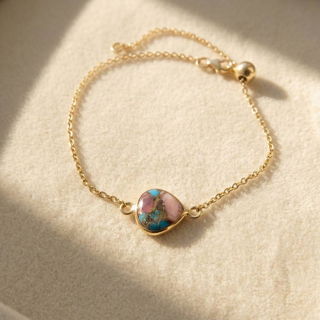 Pink Opal And Turquoise Gold Plated Adjustable Bracelet