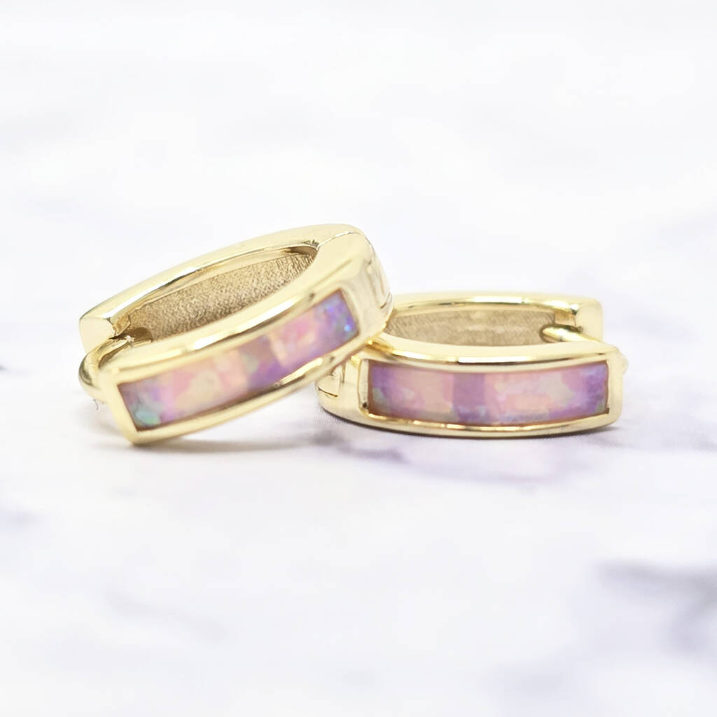 Delicate Pink Opal Inlay Huggie Hoop Earrings that celebrate the stone’s symbolism of love, compassion, and emotional healing.These elegant huggie hoops feature soft pink opal inlays that shimmer with gentle, calming tones perfect for everyday wear. Pink opal is known for encouraging love, compassion, and emotional balance, making these earrings a meaningful talisman for yourself or a loved one. A thoughtful gift for birthdays, anniversaries, or anyone who cherishes jewellery with intention and subtle sophistication.