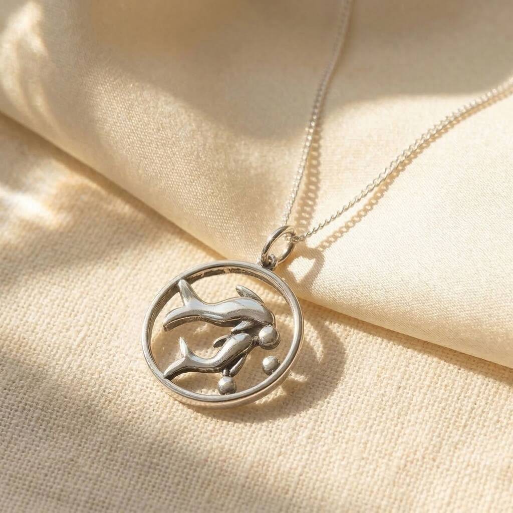 Pisces Zodiac Horoscope Charm Sterling Silver Necklace