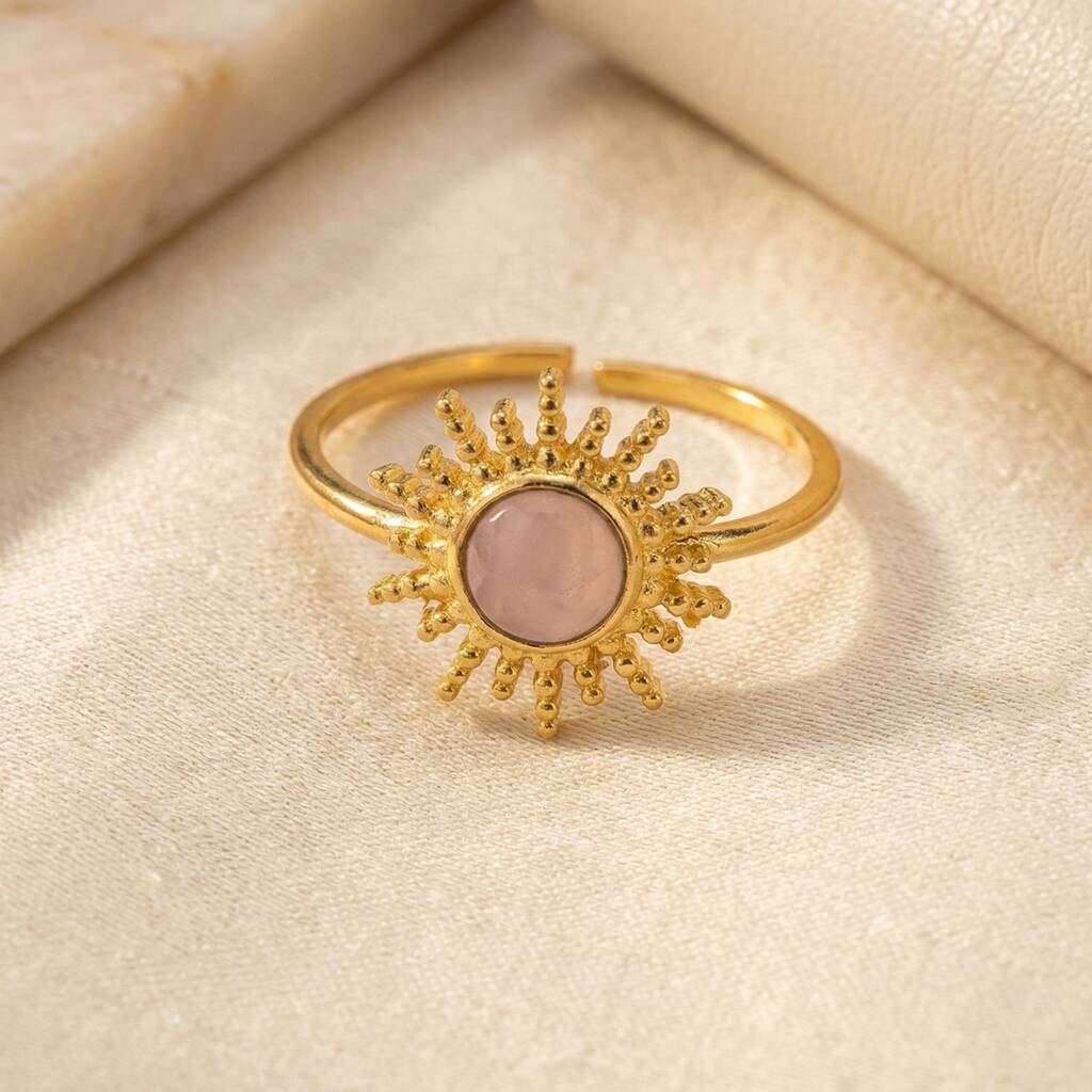Rose Quartz October Birthstone Sun Gold Plated Ring
