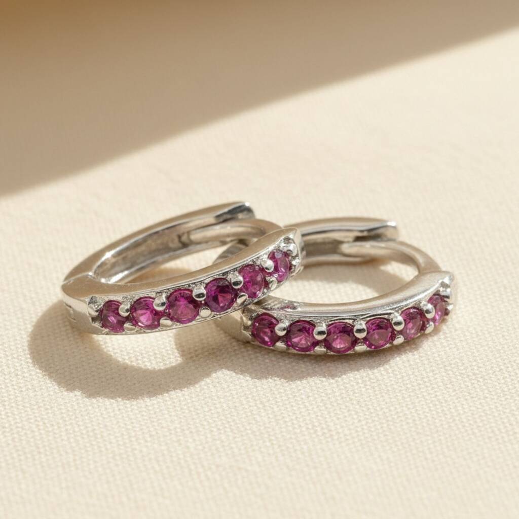 Ruby July Birthstone Small Huggie Hoop Silver Earrings