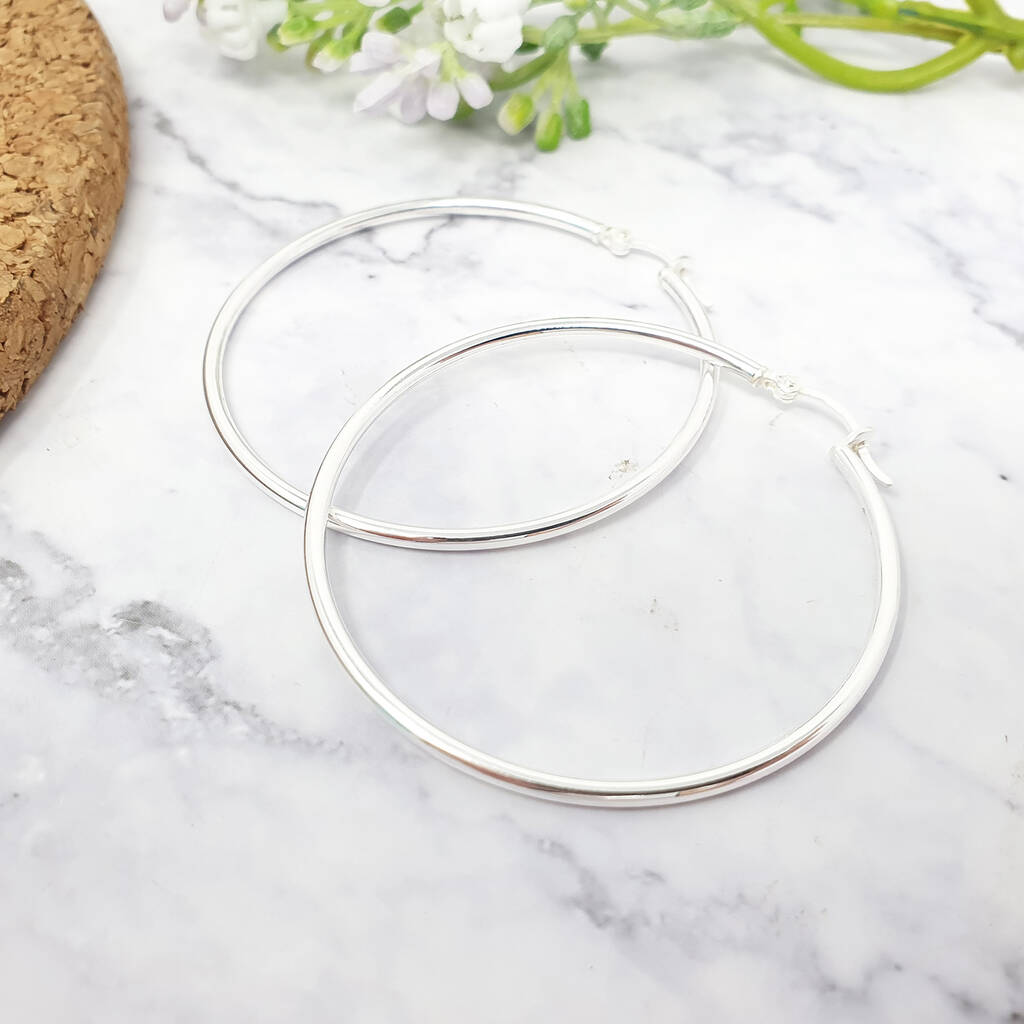 Our Sterling Silver Large 50mm Sleeper Creole-Hinged Hoop Earrings make a bold statement while offering a touch of elegance to any ensemble.Crafted from premium sterling silver, these earrings feature a secure creole-hinged design, ensuring comfort and a perfect fit throughout the day. Their striking size makes them an ideal gift for birthdays, anniversaries, or special occasions, symbolising confidence and sophistication. Perfect for dressing up a casual outfit or adding flair to formal attire, these earrings are a versatile addition to any jewellery collection that embodies timeless style.