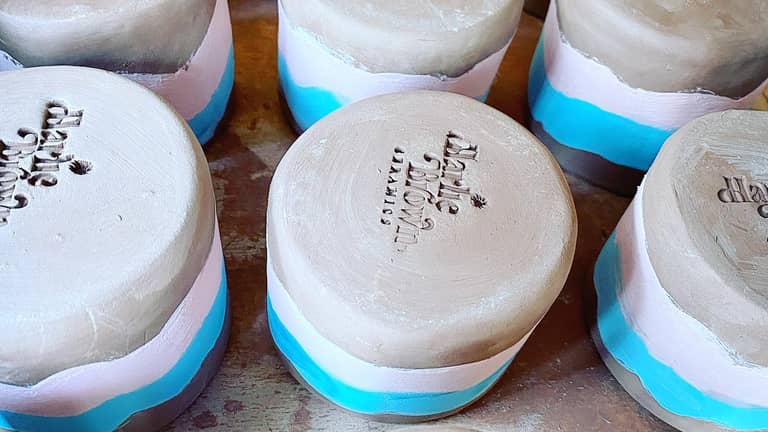 You will see in my collection I like to leave some. of the natural clay as part of the look, I use terracotta and a white stoneware. These clays are naturally very attractive so I try to enhance this with hand painted patterns shapes and designs in eye catching colours.
