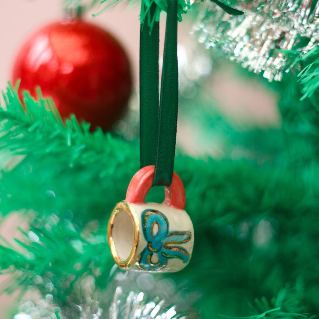 Hand Painted Mini Ceramic Mug Christmas Ornament