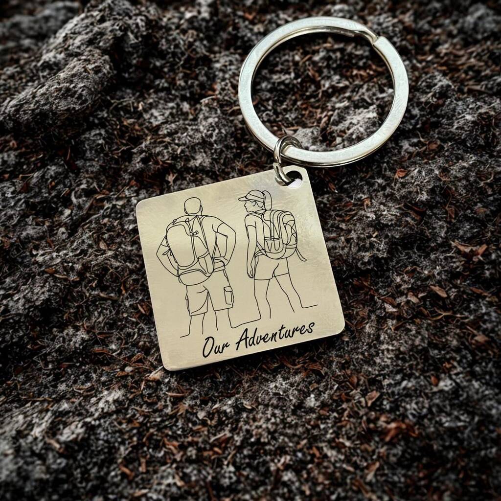 Custom Keyring – Personalised Line Art Portrait Of Couple