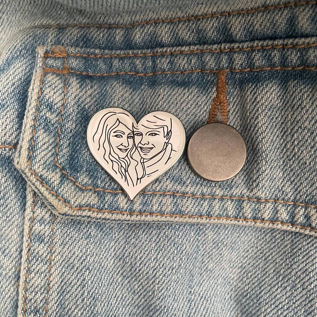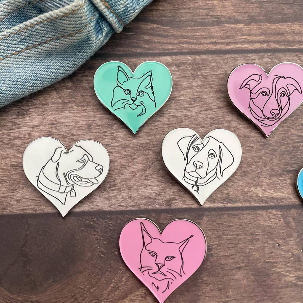 Custom Pet Portrait Enamel Pin, Engraved Line Art