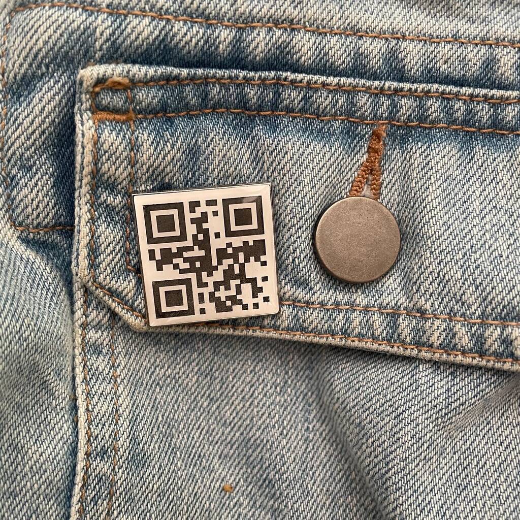 Engraved Qr Code Enamel Pin, Custom Scannable Qr Gift, Tech Lover Accessory