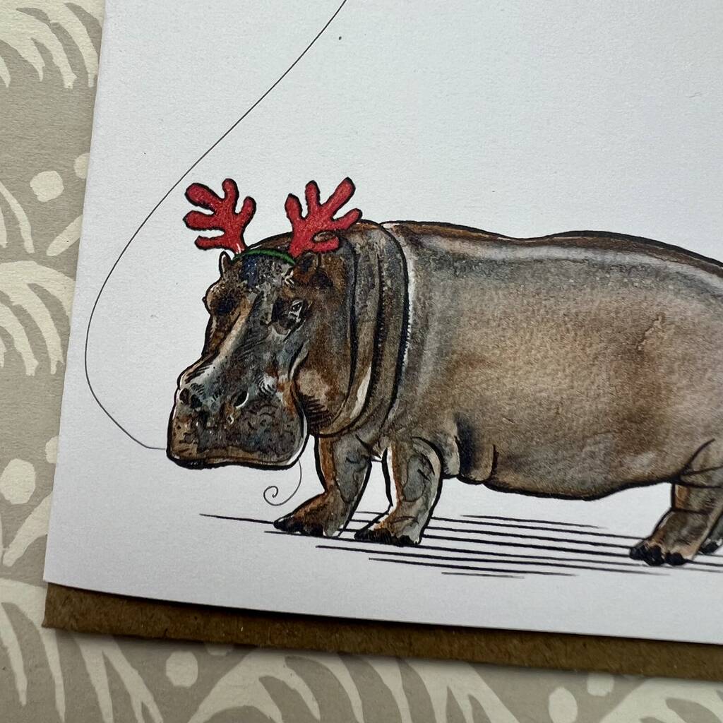 Send a smile this festive season with this adorable hippo Christmas card! Perfect for animal lovers or anyone who appreciates a cheerful, quirky design.
