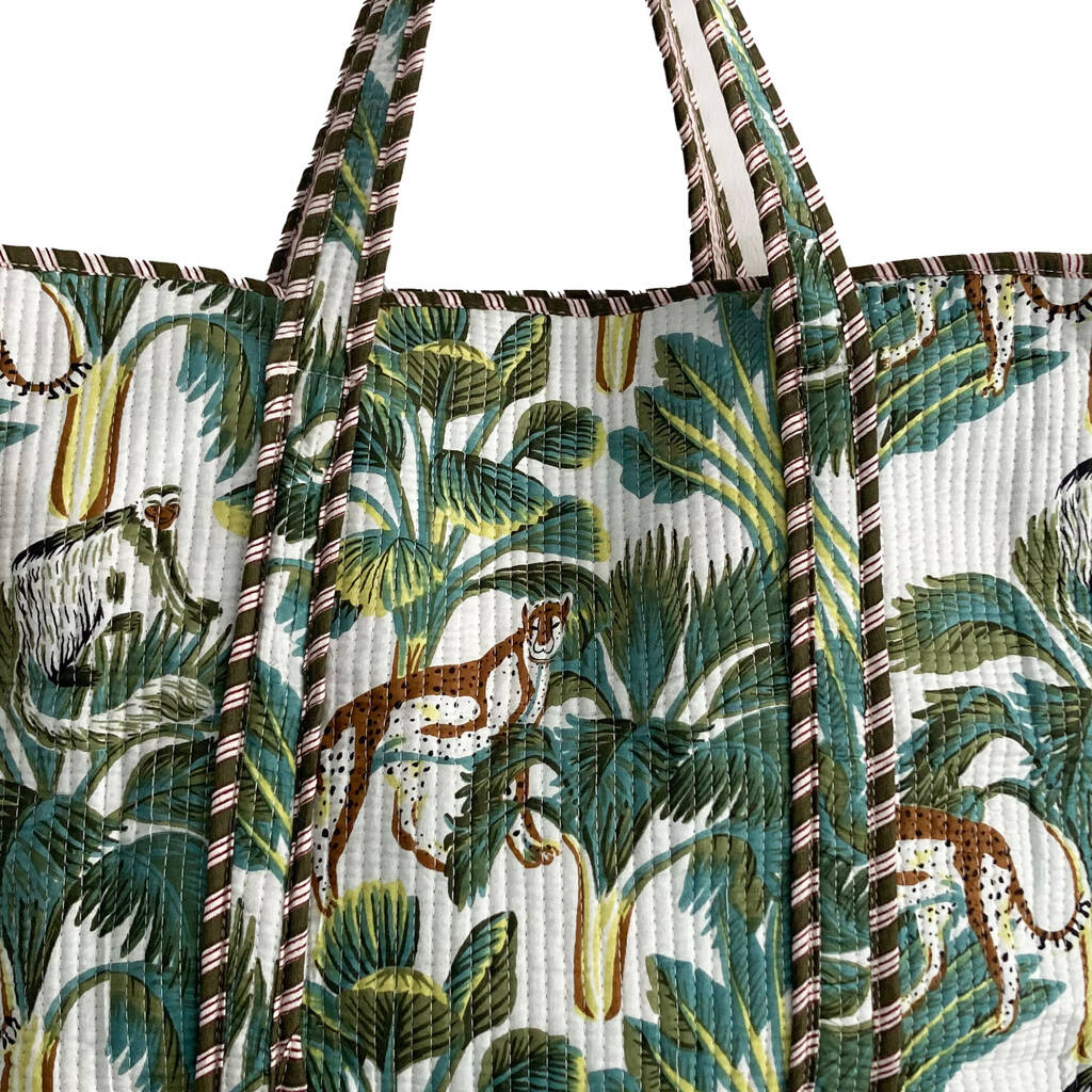 Leopard Print Large Quilted Cotton Tote Bag In White