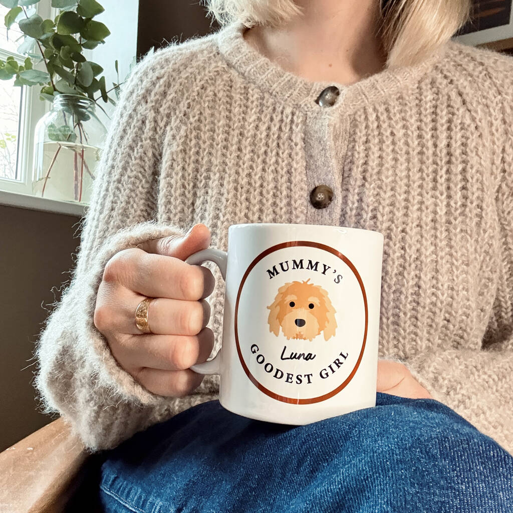 Let the world know who has the 'Goodest' Girl or Boy with this cute personalised dog mug, the cup features your pup's breed image and is personalised with their name too.