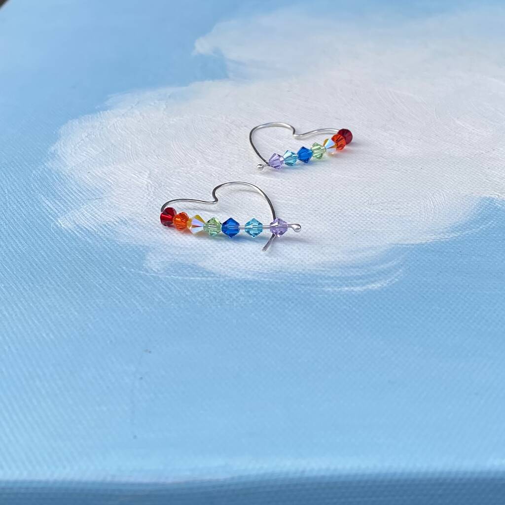 Colourful Crystal Heart Sterling Silver Hoop Earrings