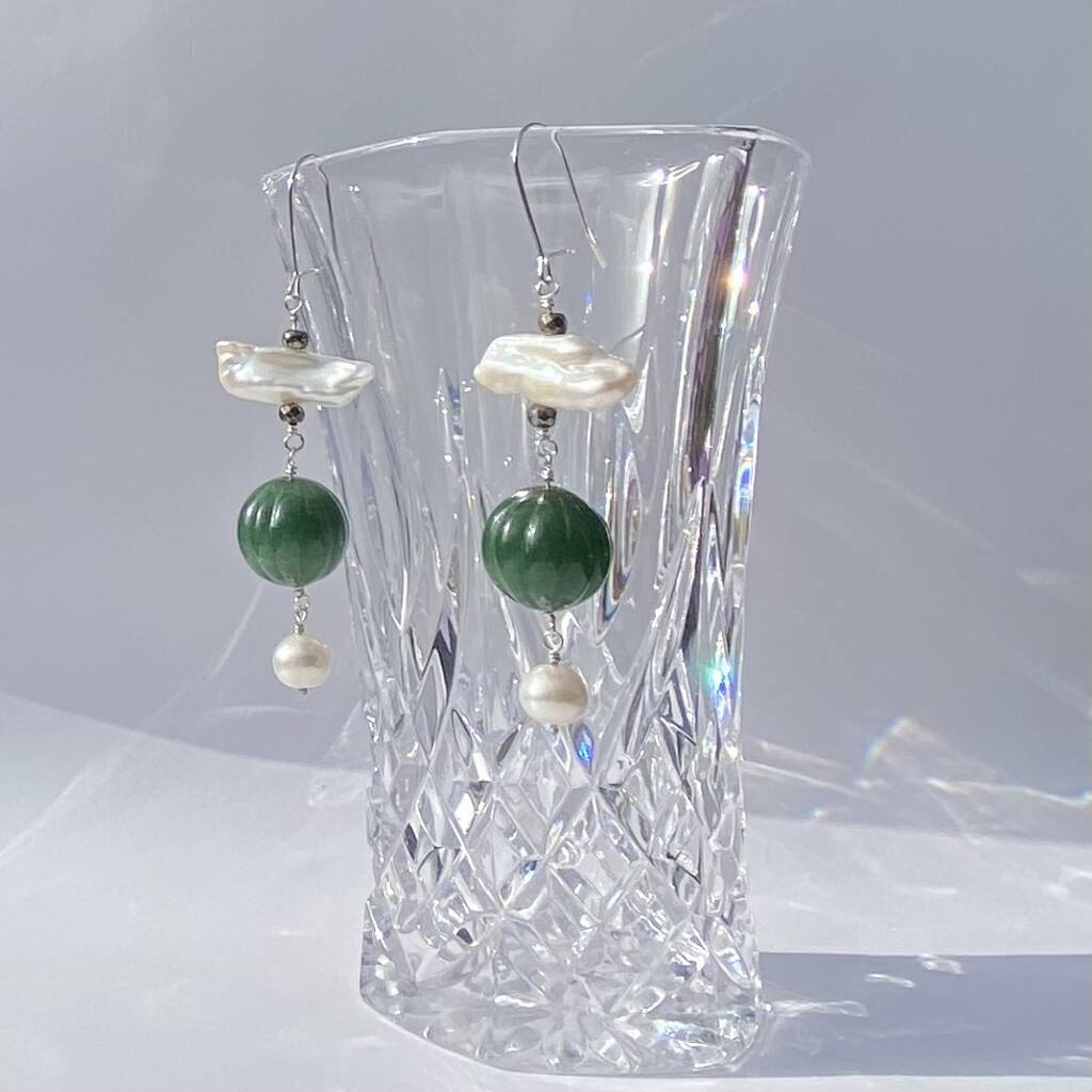 Gemstone Olive Green Pearl And Marcasite Earrings