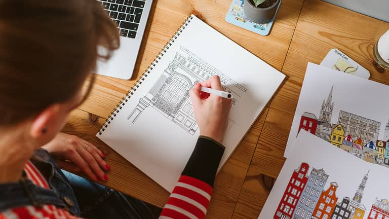 Buildings and architecture are a main feature of my designs and I've created lots of cityscapes inspired by my travels.