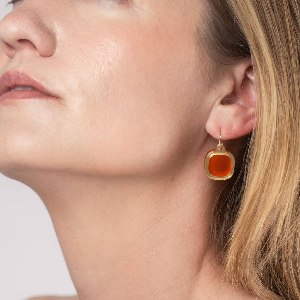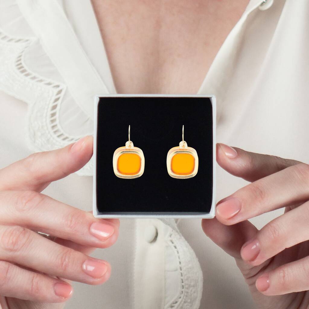 Material: Gold-plated stainless steel finding with elegantly assembled laser-cut gold mirror and frosted acrylic layers.