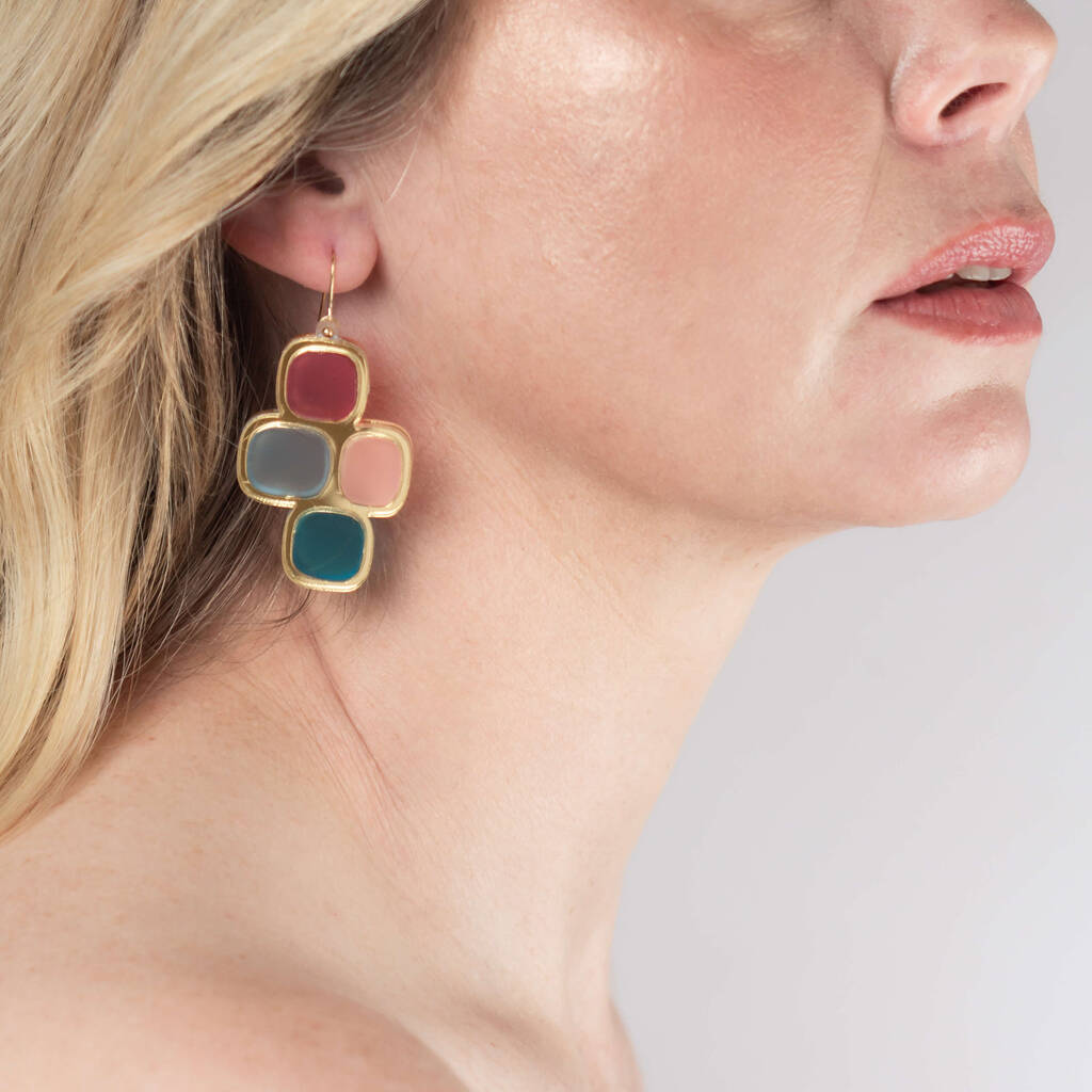 Material: Gold-plated stainless steel finding with elegantly assembled laser-cut gold mirror and frosted acrylic layers.