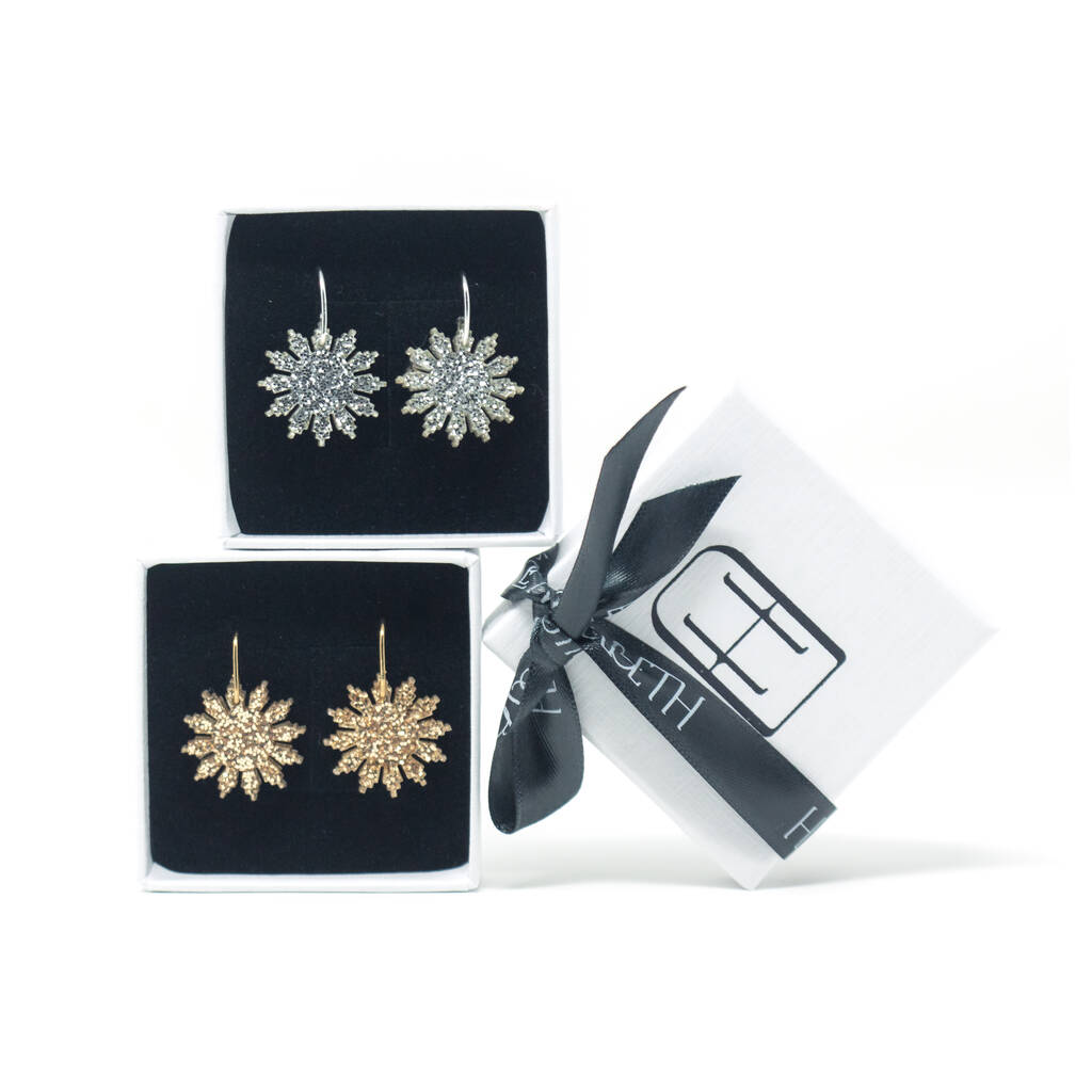 Material: Gold filled or sterling silver finding with elegantly assembled laser-cut sparkling acrylic.