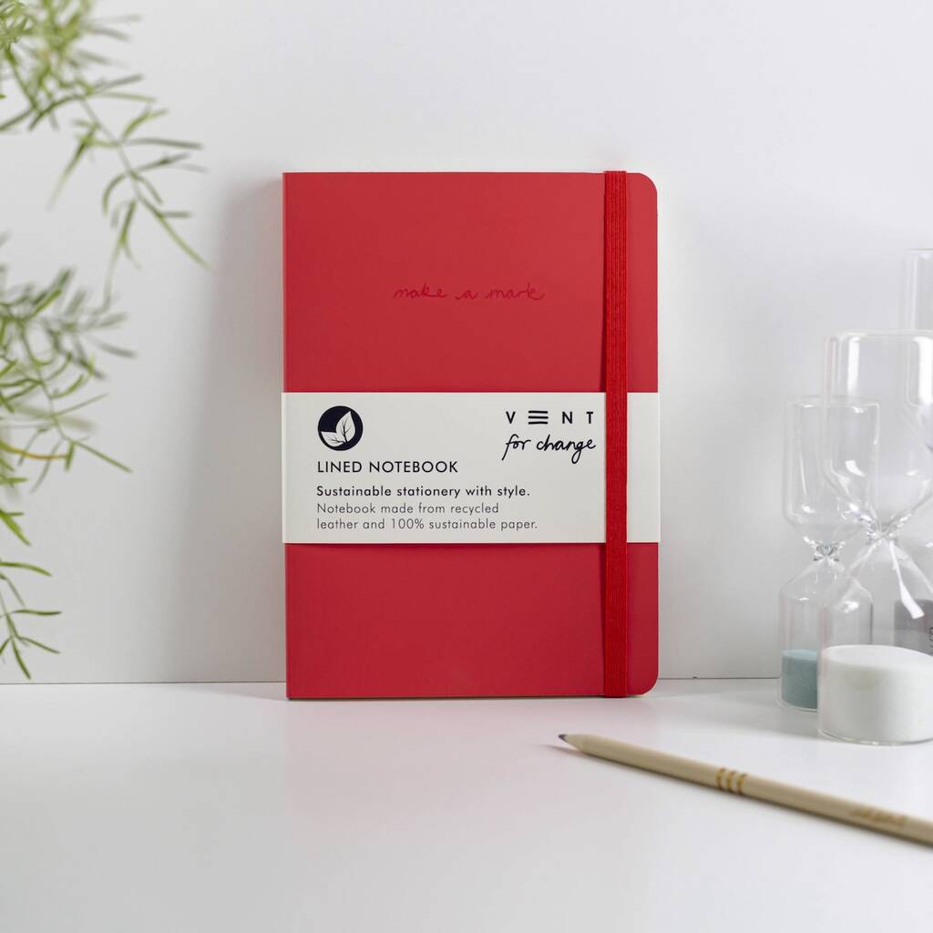 Red A5 Recycled Leather Lined Notebook, 1 of 6