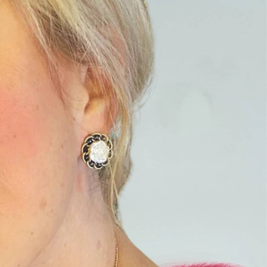 Black And Gold White Rose Stud Earrings – Elegant Gift For Her, Mum Or Gran