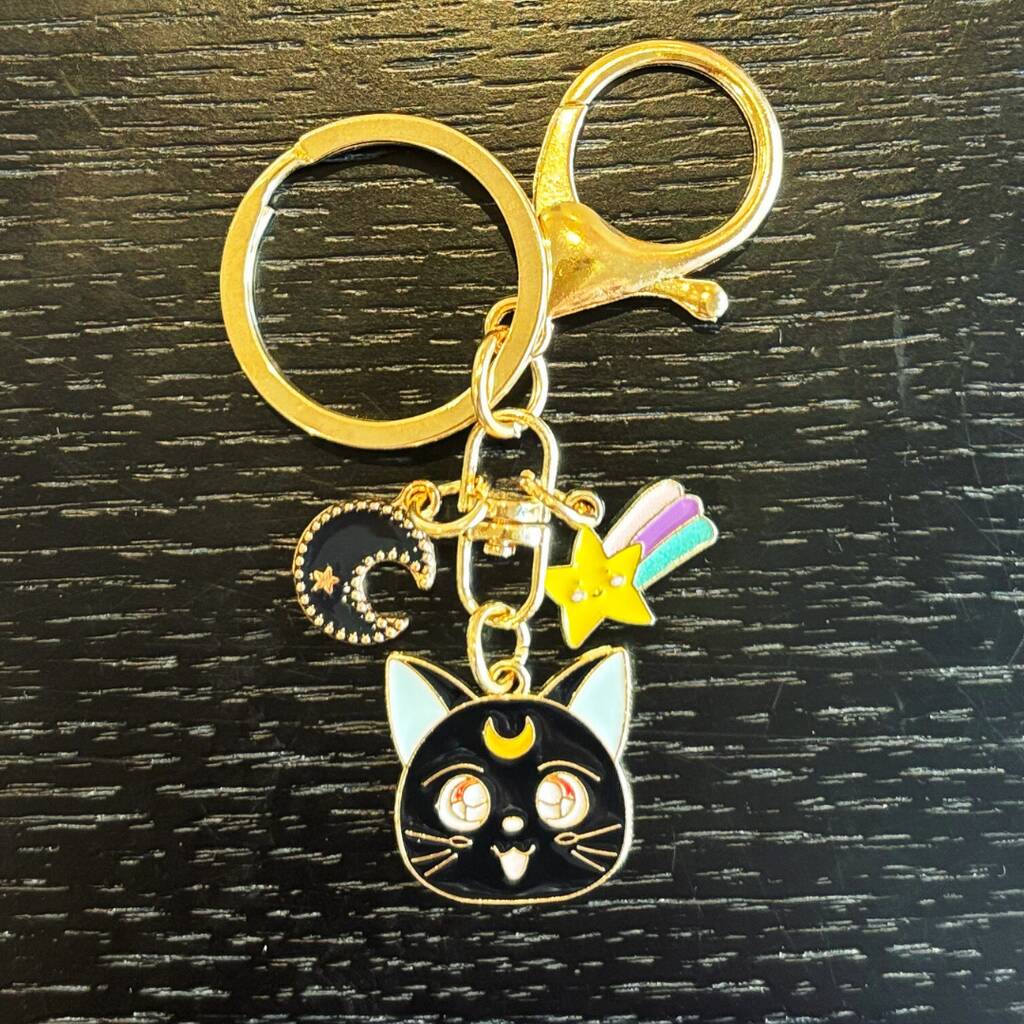 ▪️ Cute black cat moon keyring – detailed with star & moon charm