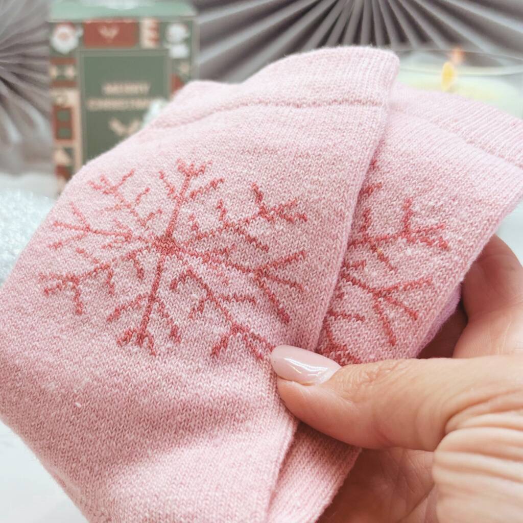 ▪️ Soft, thick dusky-pink socks with snowflake design (fits UK sizes 3–8)