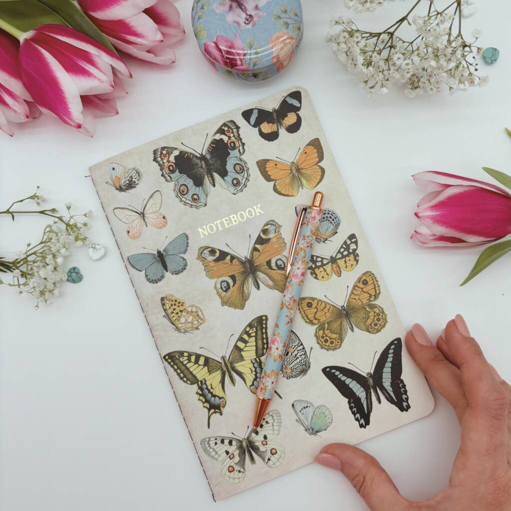 Vintage Flowers Design A5 lined notebook. A beautiful design, ideal for keeping notes in. Please note that the design is currently with butterflies - see photos.