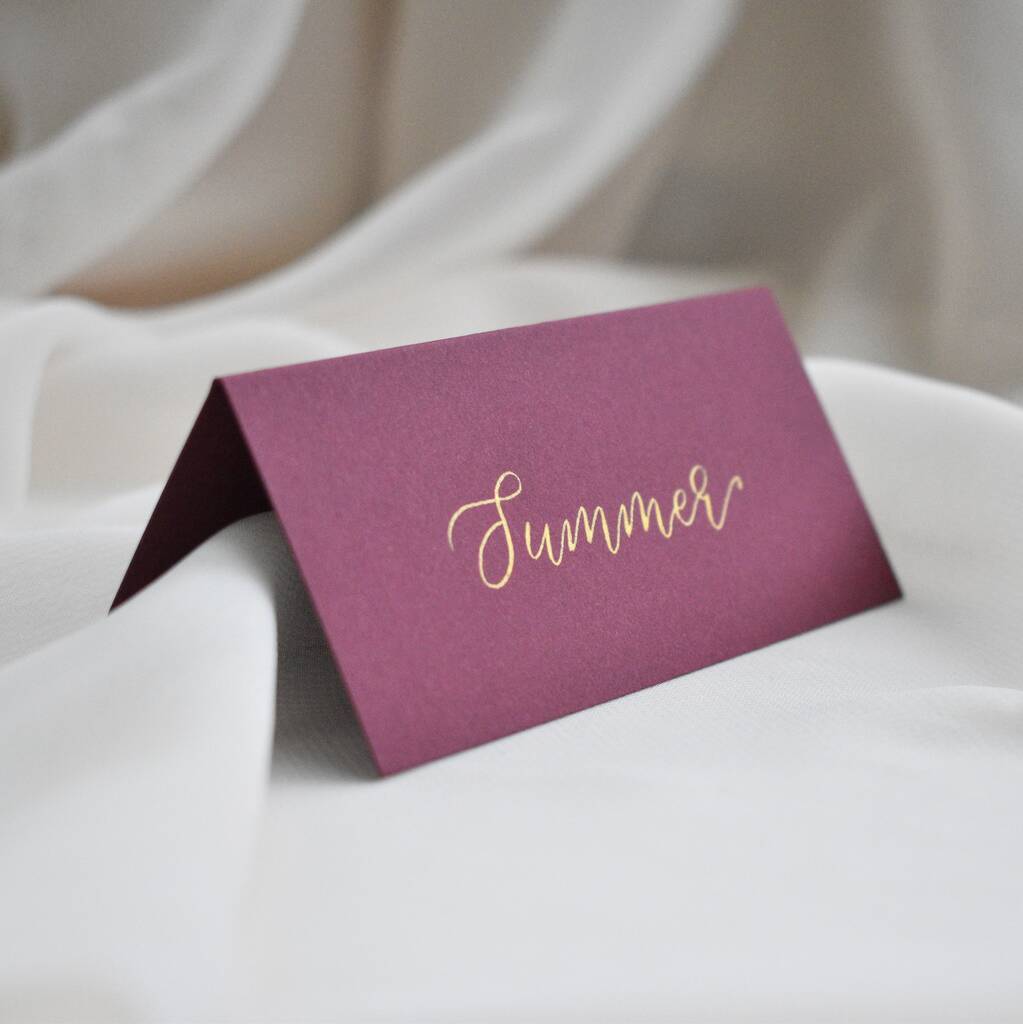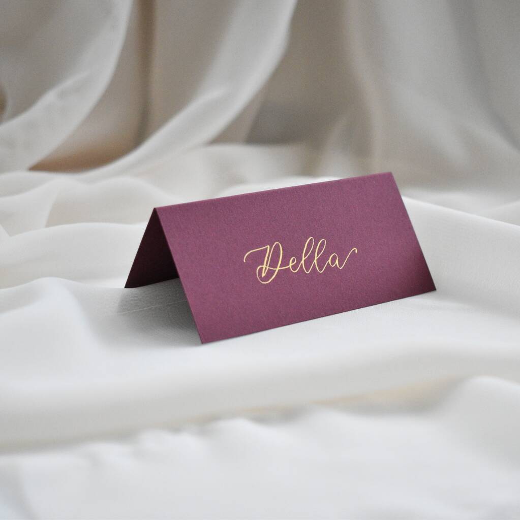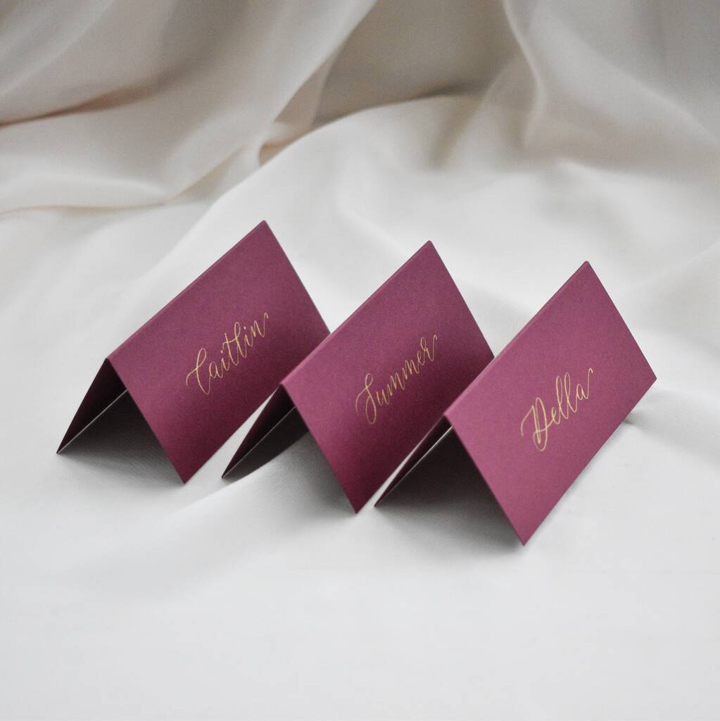Personalised Calligraphy Burgundy Place Name Cards X 10