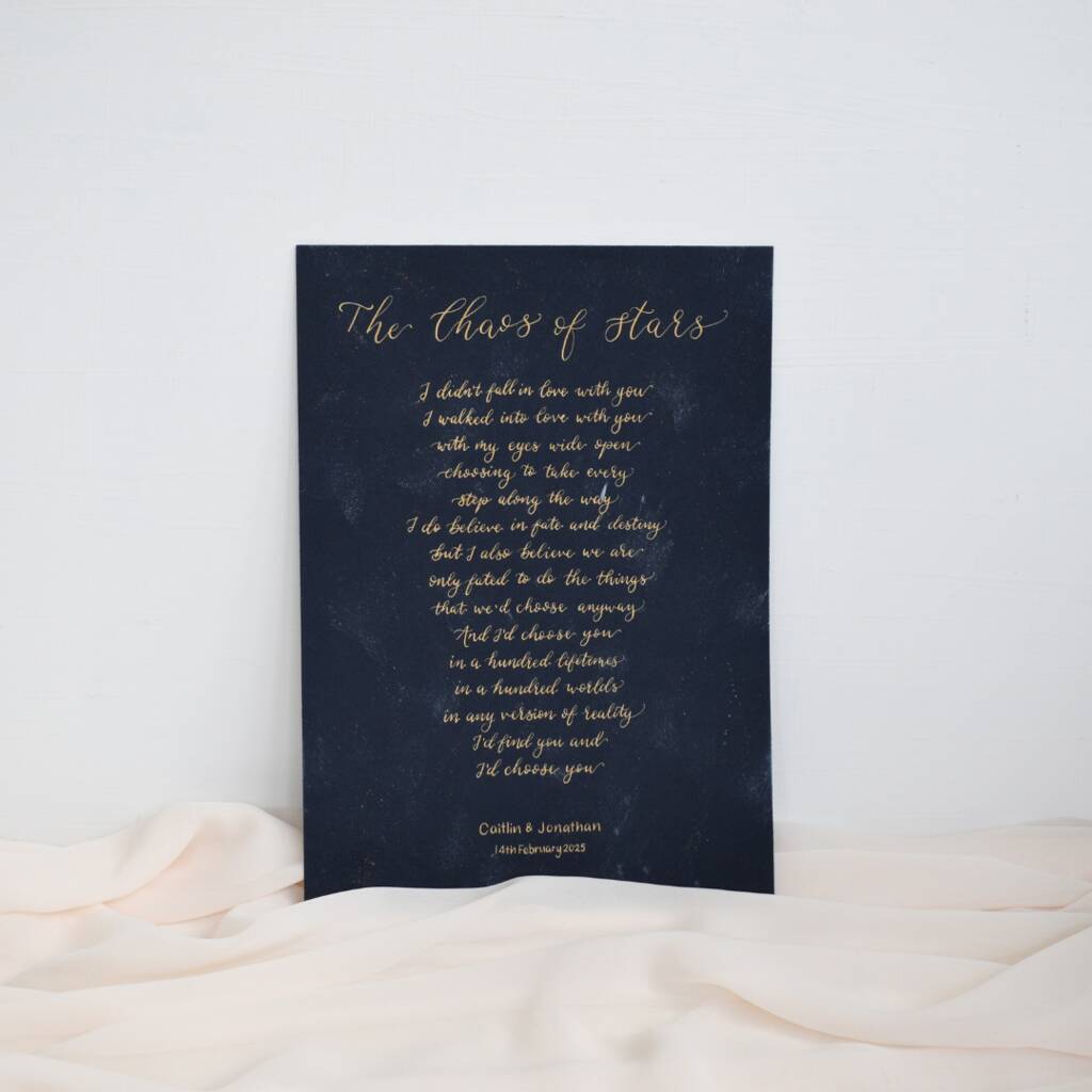 Personalised Calligraphy First Wedding Paper Anniversary Print