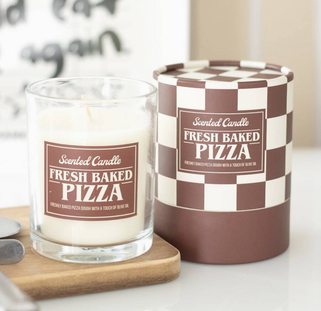 Fill the air with the mouthwatering aroma of freshly baked pizza dough with a touch of olive oil with this quirky scented candle.