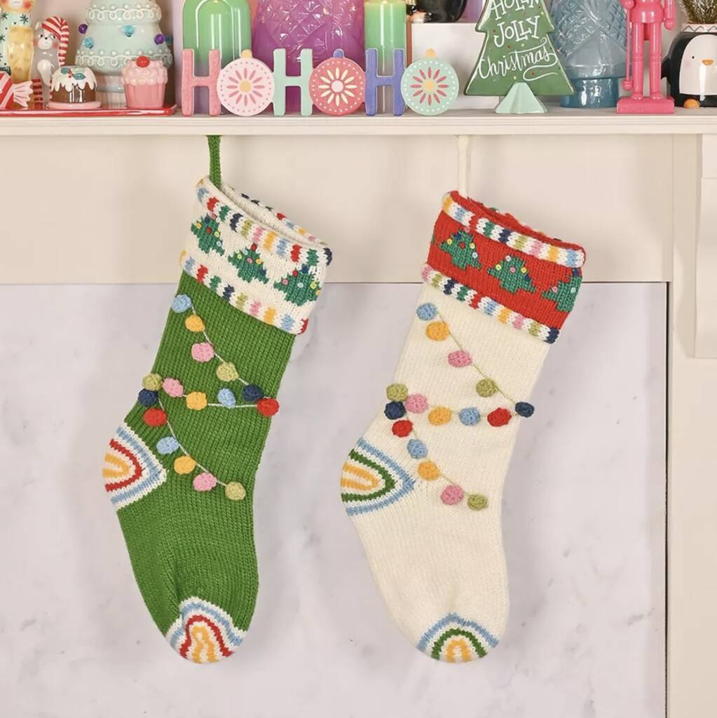 Knitted Christmas Stocking With Pom Pom Garland