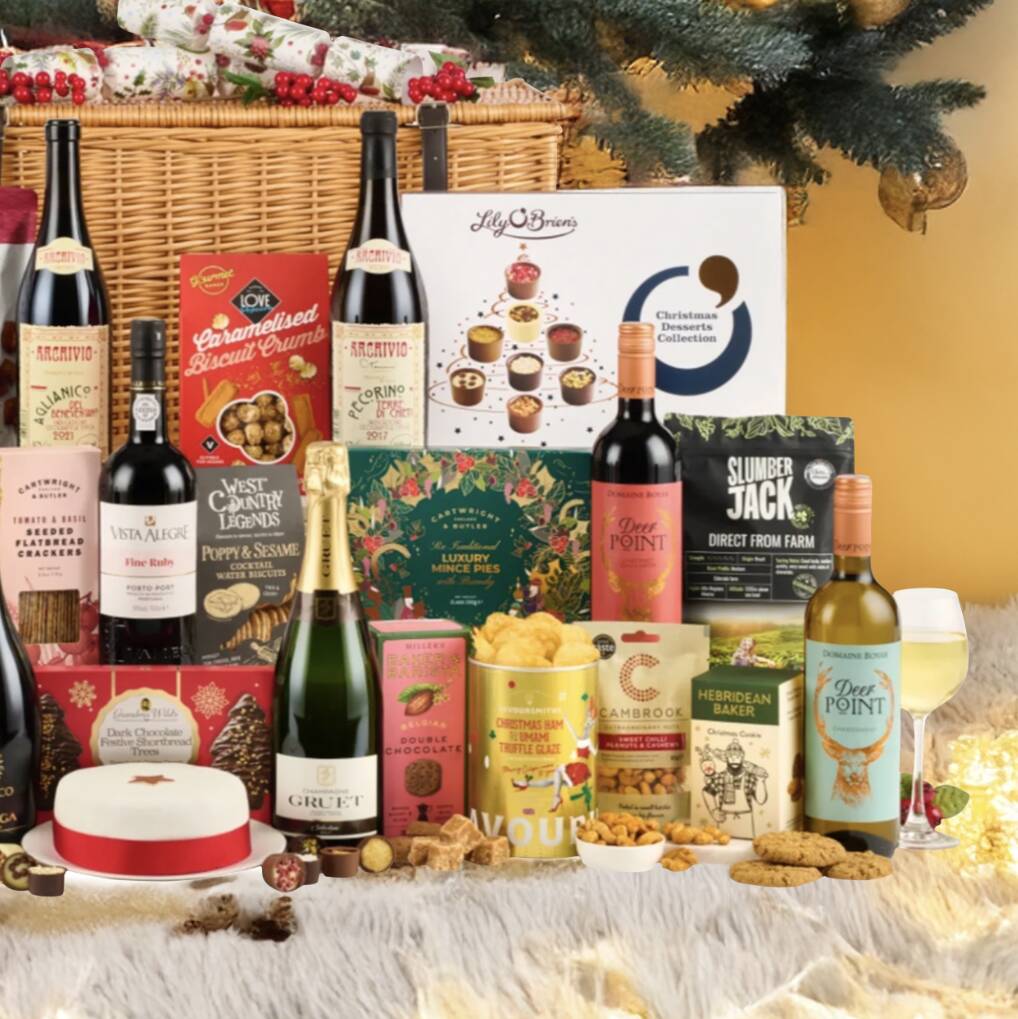Gruet Brut Champagne NV 75cl x1 Cignozza Peregrinus Toscana 75cl x1 Land of Plenty Sauvignon Blanc 75cl x1 L'Autantique Merlot 75cl x1 L'Autantique Sauvignon Blanc 75cl x1 Barbadillo Cream Sherry 75cl x1 Vista Alegre Fine Ruby Port 75cl x1 Casa Bottega Prosecco DOC 75cl x1 Bottega Zero Alcohol Sparkling White 75cl x1 Forman & Son Smoked Salmon 100g x1 Forman & Son Dill Gravadlax 100g x1 Croome Cheese Stinking Rose Mature Cheddar with Garlic & Parsley 150g x1 Croom Cheese Faithful Baron Cheddar with Worcester Sauce & Shallots 150g x1 Mouse House Vintage Cheddar 200g x1 Cropwell Bishop Stilton Wedge 200g x1 Dukeshill Small Ham 900g x1 Buchanan's Chocolate Caramel Mix 150g x1 Pea Green Boat Cheese Sables with Nigella Seed & Chive 80g x1 Original Cake Company 9 Pcs Celebration Cake x1 Slumber Jack Italian Espresso Coffee 220g x1 New English Teas Vintage Victorian Tea Selection 72 Bags x1 Tracklements Perfect Ploughman's Pickle 245g x1 Grandma Wild's 6 Luxury Mince Pies x6 Monty Bojangles Magnificent Dusted Truffle Selection 248g x1 Silver & Green Garlic Stuffed Olives 220g x1 Mrs Darlingtons Winter Berry Preserve 340g x1 Joe & Seph's Milk Chocolate Popcorn Stars 105g x1 Farmhouse Christmas Tree salted caramel Biscuit Tin 400g x1 Suerdown Mint Chocolate Collection 170g x1 The Kindness Bakery Stilton Cheese Oatcakes Bites 150g x1 Savoursmith Desert Salt 100g x1 Olives Et Al Pigs in Blankets Roasted Nuts 90g x1 Hawkens Jinglebreads 140g x1 Cartwright & Butler Crispy Wafer Rolls with Cocoa Cream 150g x1 Joypots White Chocolate Brazils 100g x1 Cartwright & Butler Wafers for Cheese with Sea Salt & Pepper 75g x1 Robin Reed "Enchanted" Christmas Crackers 6 Pack x1