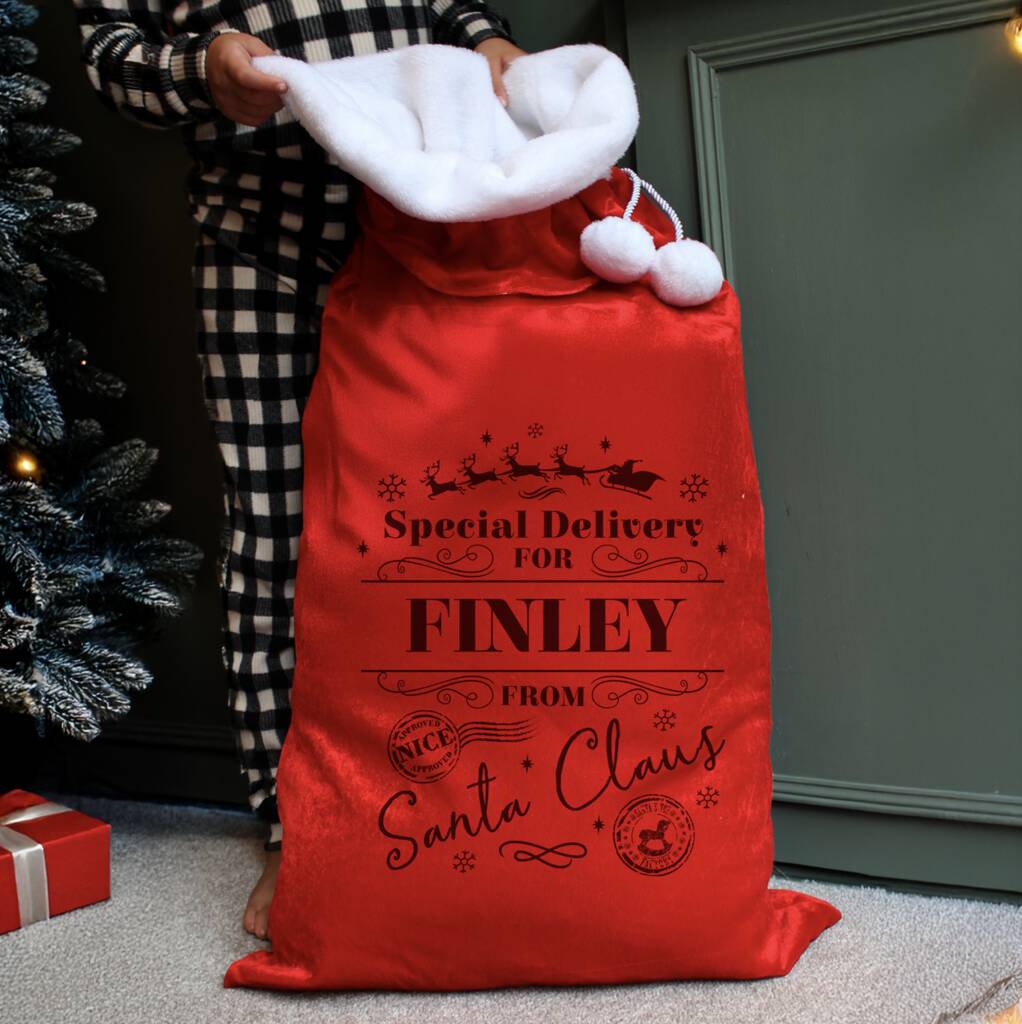 Personalised Luxury Pom Pom Special Delivery Red Sack