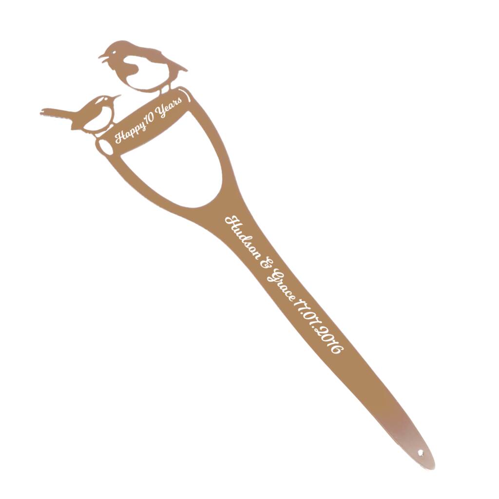 Personalised Copper Metal Anniversary Bird Spade Decoration