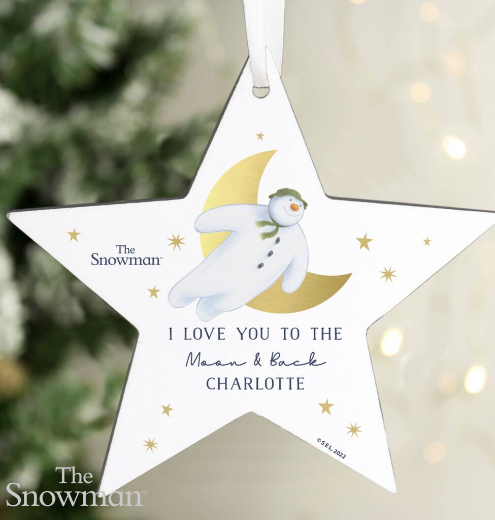Personalised The Snowman Gold Wooden Star Decoration