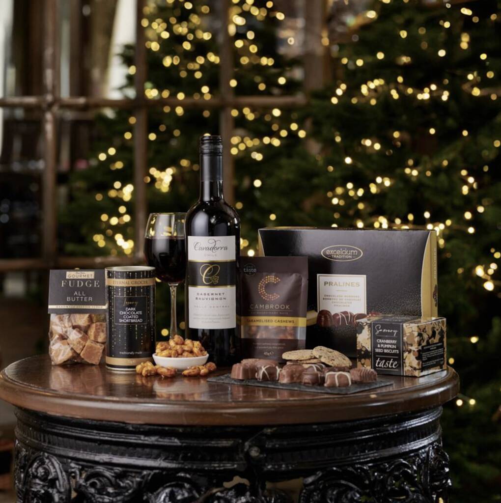 This festive gift box is packed with an assortment of gourmet delights that cater to diverse palates. The Taste Cranberry & Pumpkin Seed Savoury Biscuits offer a delightful savoury note, ideal for pairing with the wine. For those with a sweet tooth, the Bon Bons All Butter Fudge provide rich, indulgent flavours. The crunchy Cambrook Caramelised Cashews and the timeless Eternal Grocer Chocolate Coated Shortbread add further layers of enjoyment. Each item has been carefully selected to create a harmonious blend of tastes, making this hamper a truly delightful gift for any wine lover and the perfect wine gift for any special occasion.