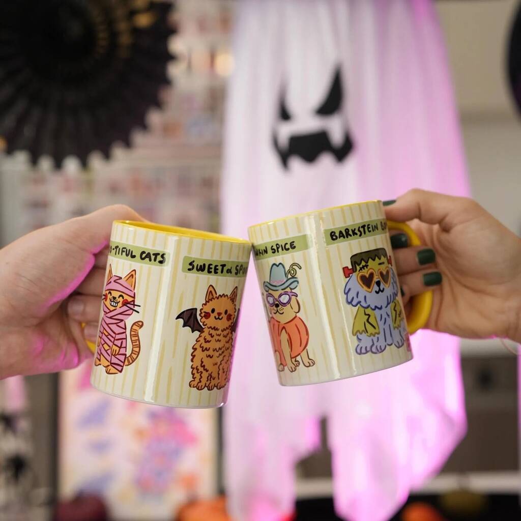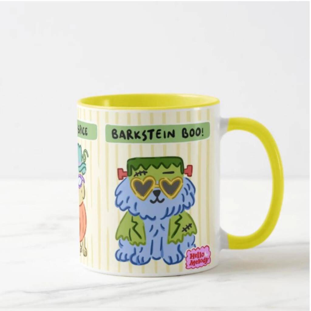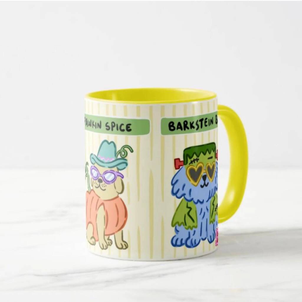 Sip in style with this Halloween Dog Mug, featuring adorable pups in ghost and pumpkin costumes—perfect for gifting or seasonal coffee moments.Celebrate Halloween with the playful Halloween Dog Mug, featuring cute illustrated pups dressed in ghost and pumpkin costumes. With its vibrant yellow handle and inside, this fun ceramic cup adds charm to your morning brew. Perfect for coffee, tea, or hot chocolate, it’s both practical and adorable. A thoughtful seasonal gift for dog lovers, friends, or family, this mug brings a touch of spooky fun to any kitchen. Ideal for autumn nights, parties, or cozy mornings, the Halloween Dog Mug is a must-have accessory for anyone who enjoys combining cuteness with festive spirit.