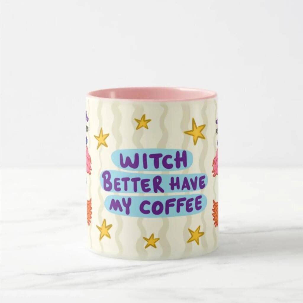 Start spooky mornings right with this Witch Better mug, a playful Halloween coffee cup with a witchy design, perfect for gifting or seasonal fun.Bring humour and Halloween magic to your mornings with the Witch Better Mug. Featuring a quirky witch illustration with bold lettering that reads “Witches Better Have My Coffee,” this colourful cup is the perfect blend of spooky and fun. Its pink handle and interior add a charming pop of colour, while the durable ceramic build makes it ideal for daily coffee, tea, or hot chocolate. A fantastic gift for coffee lovers, Halloween enthusiasts, or anyone who enjoys playful mugs, this witchy design adds personality and laughter to every sip. A must-have seasonal mug for your autumn collection.