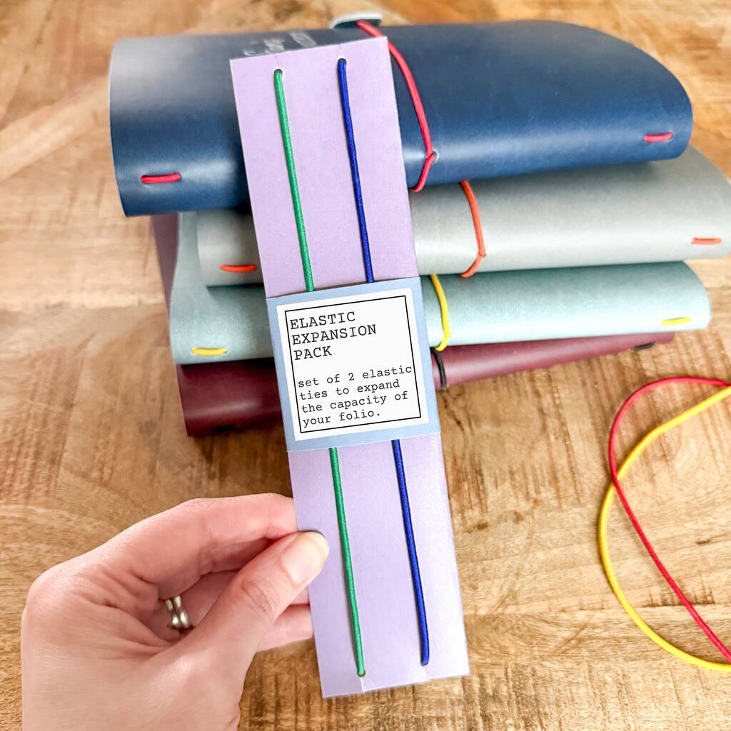 Expand your refillable planner folio with two additional elastic loops. Designed to hold extra inserts, allowing your system to grow to up to five notebooks