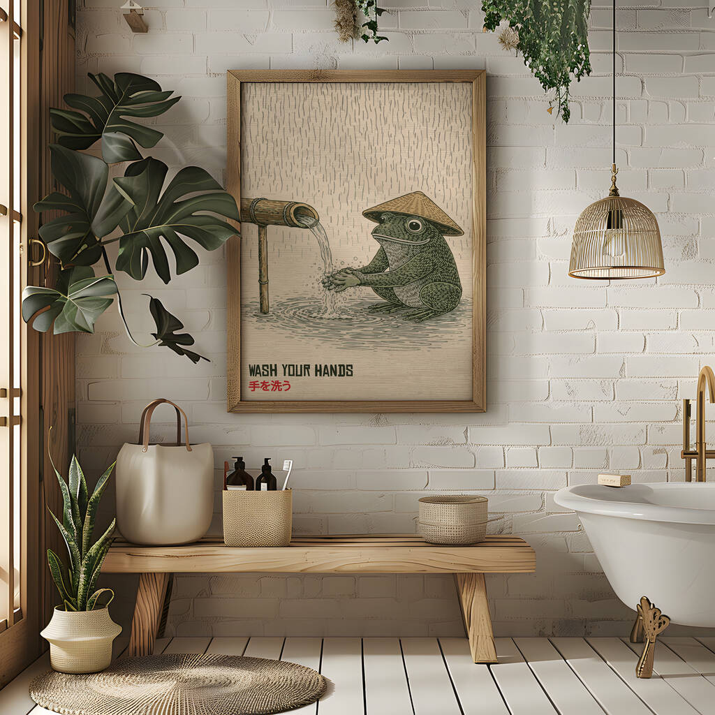 Japanese Frog Bathroom Print | Wash Your Hands Wall Art