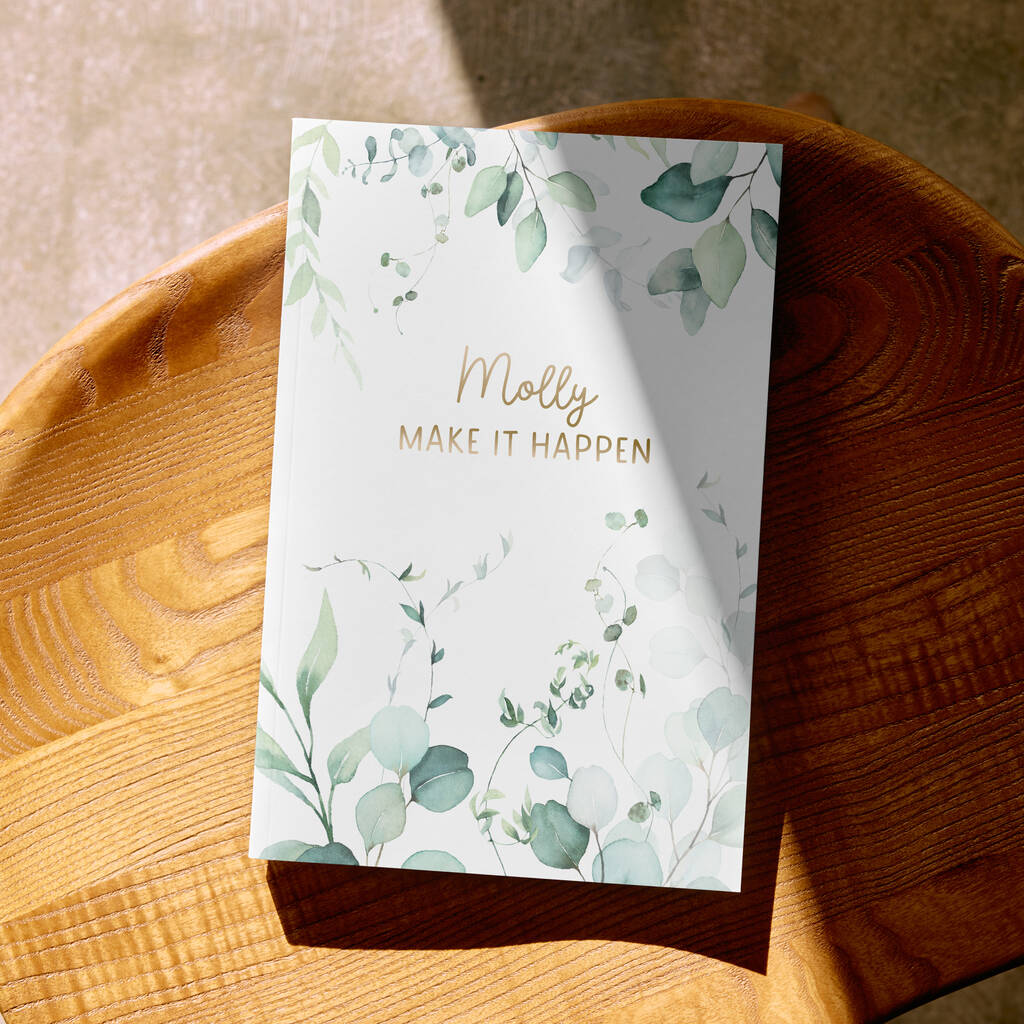 The dated format keeps everything structured and easy to follow, while the spacious layout leaves room for ideas and reflection. Finished with a soft-touch cover and personalised foil text, this custom journal is both functional and elegant.