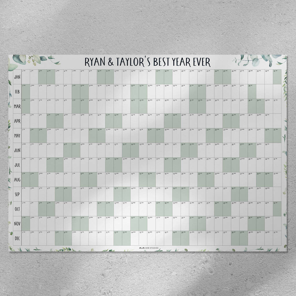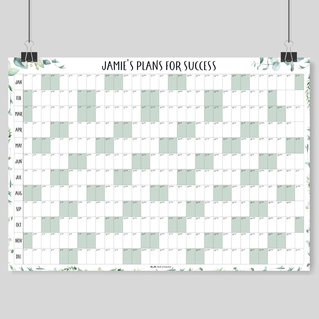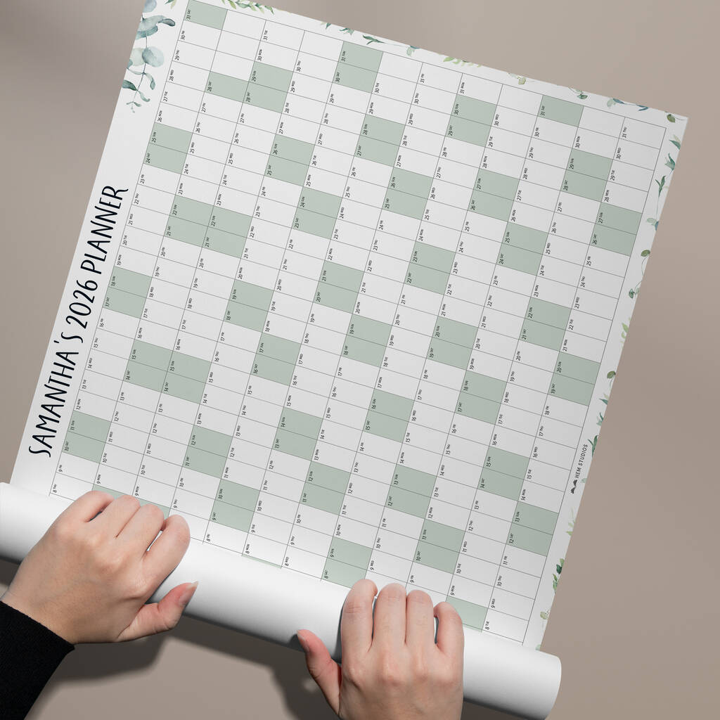 Personalised 2026 Wall Calendar | A1 Or A2 Eucalyptus Planner