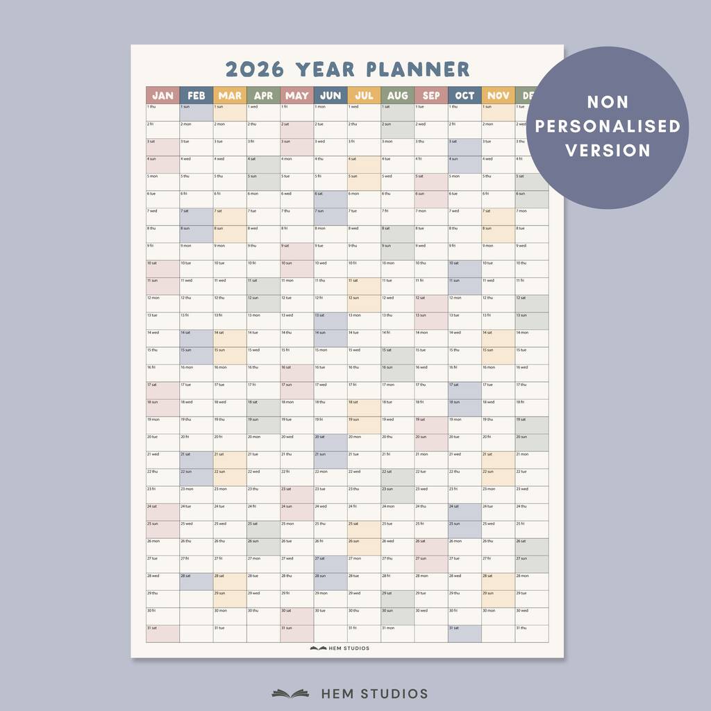 Personalisation: Add your custom wording (e.g. “The Jones Family 2026” or “Hem Studios Office Planner”).