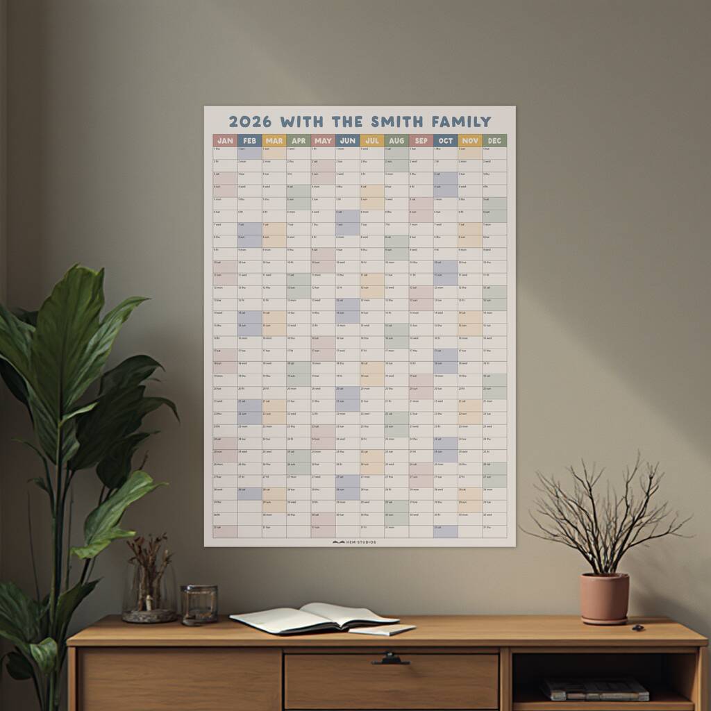 Stay organised in style with our Personalised 2026 Wall Planner. Featuring muted boho-inspired tones and a portrait year-at-a-glance layout, it’s perfect for managing birthdays, holidays, school terms or work deadlines.