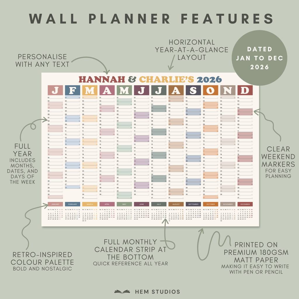 Personalisation: Select Non Personalised for the standard text: "2026 Year Planner" or Personalised to add your own custom text (e.g. “Smith Family’s 2026” or “The Coffee Pot Office Planner”).