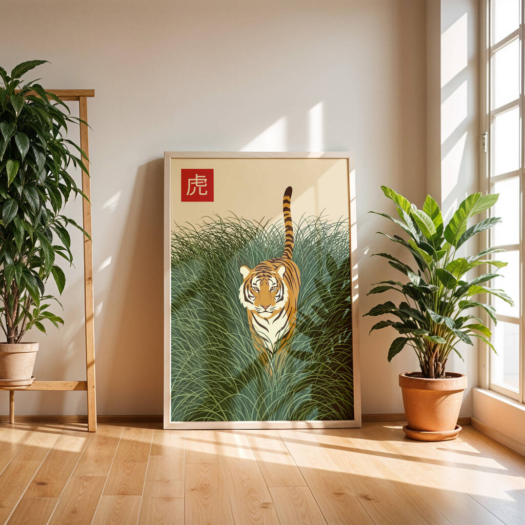 Tiger Art Print | Japanese Inspired Minimalist Wall Decor